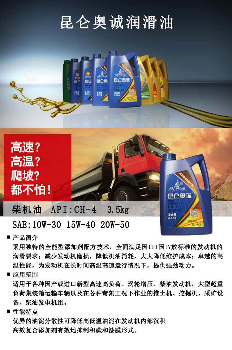 可提供10W-30 15W-40 20W-50三个品种牌号。